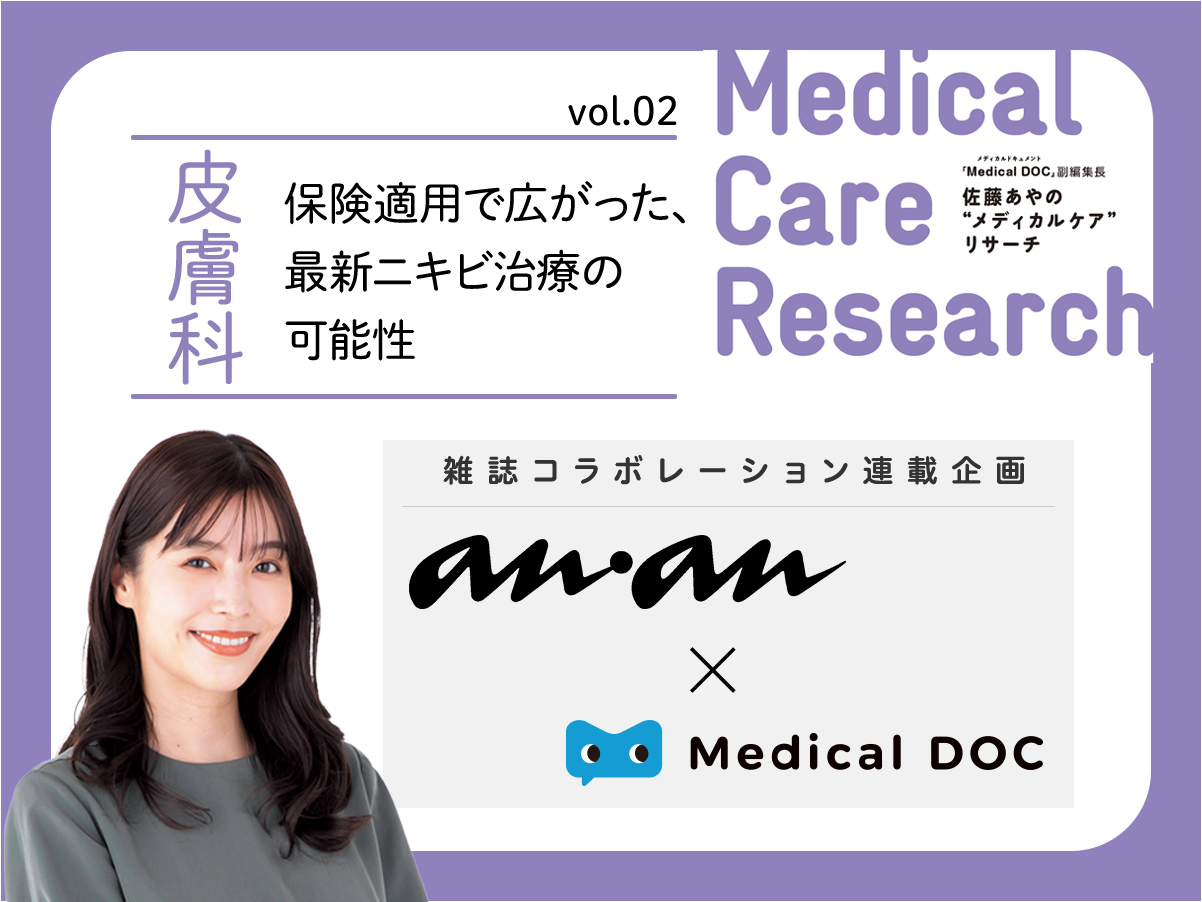 ネットを検索すればすぐに情報が手に入る時代だけれど、特に大切なカラダに関することは、情報源の確かさを重視したいもの。そんなニーズに応えるべく「Medical DOC」副編集長・佐藤あやが、気になる最新医療にQ&Aで迫る、女性誌「anan」とのコラボレーション連載企画です。