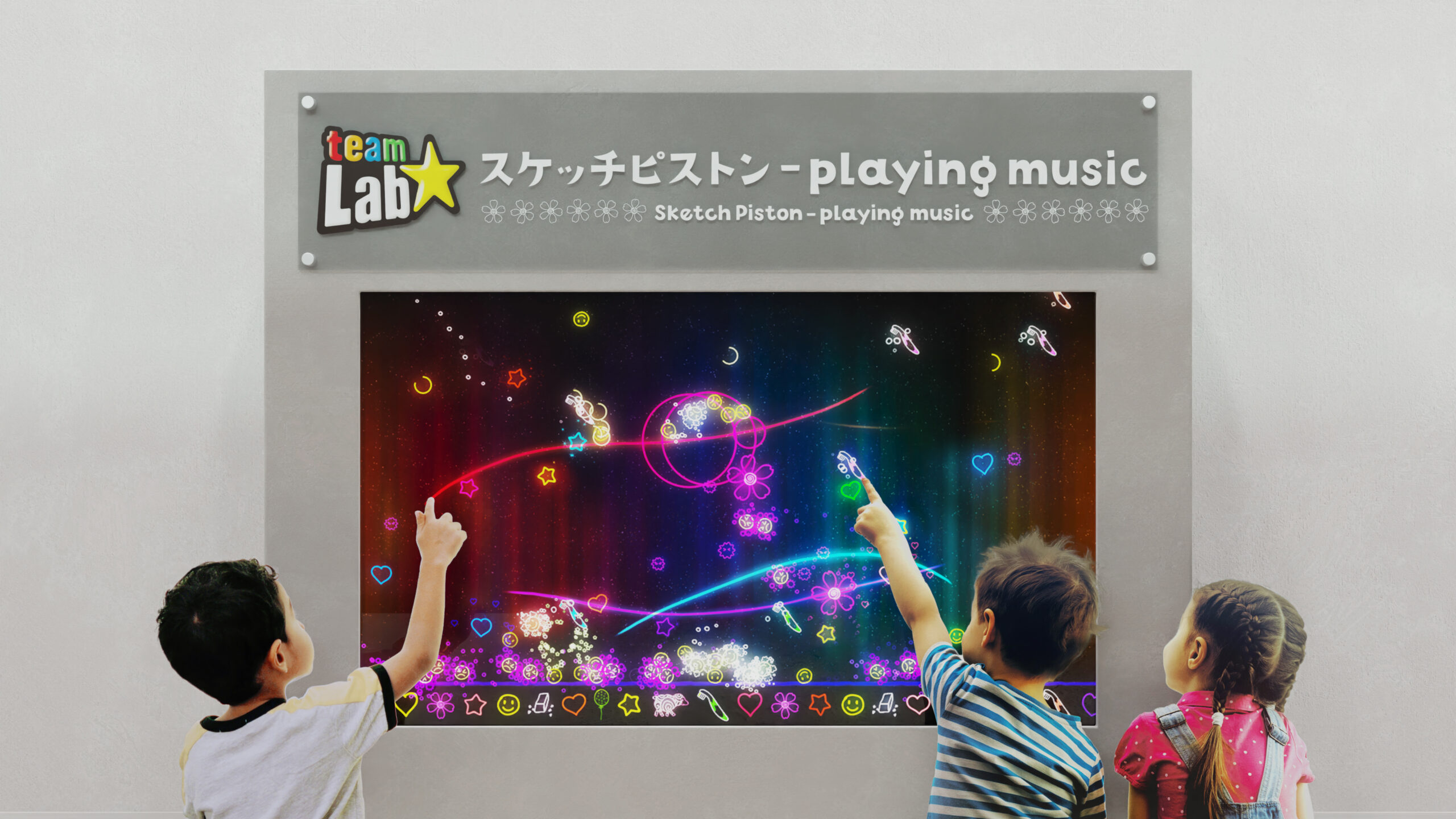 チームラボ《スケッチピストン – playing music》© チームラボ
