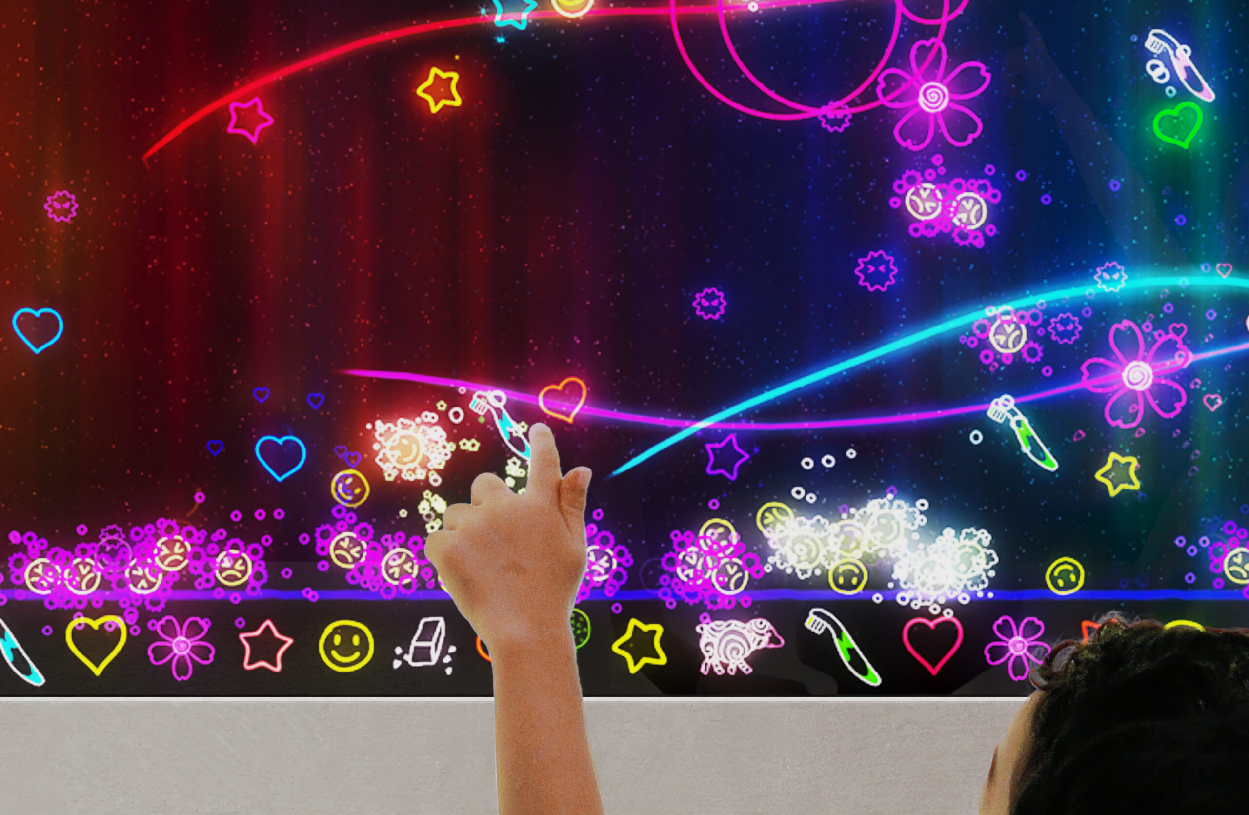 タッチパネルを壁に設置するだけで、創造的な遊びの場が創出され、楽しみながら過ごすことのできる場をつくることができます。