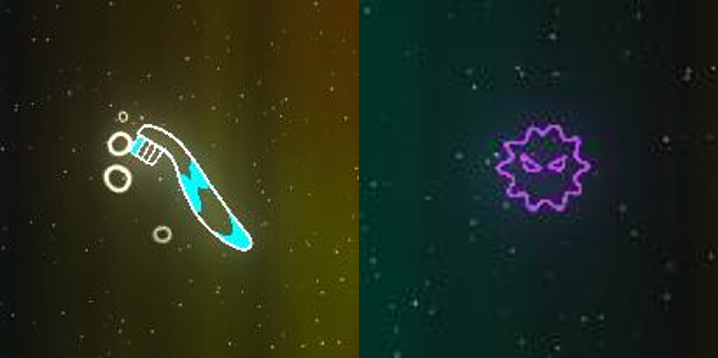 歯ブラシでばい菌をキレイにする体験ができ、遊びながら歯みがきの大切さを学ぶことができます。