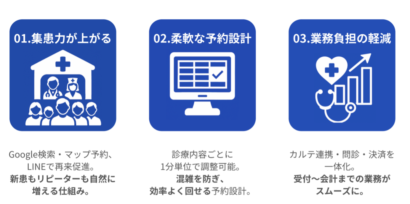 1.集患力が上がる:Google・マップ・LINE導線で新患と再来を一括支援