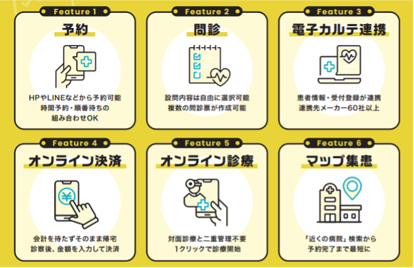 ・60社以上の電子カルテ・レセコンとの連携により、患者情報や受付登録を自動反映