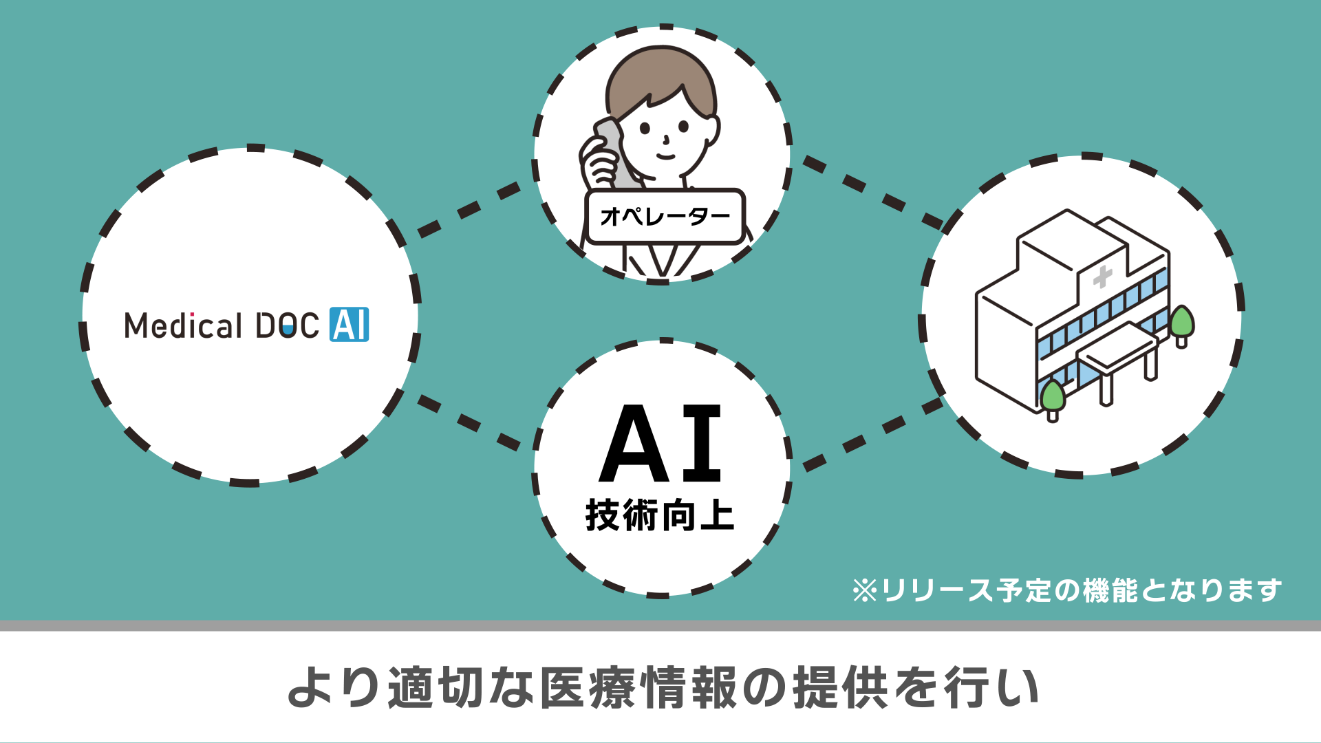 さらに、今後はchatbotでの対話をきっかけにユーザーの医療に関するニーズを把握し、オペレーターとの組み合わせによって、より適切な医療情報、医療機関をユーザーに提供するサービス機能のリリースも予定しております。